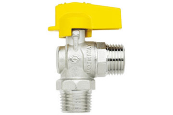 Rubinetto a sfera squadro maschio-maschio, con levetta alluminio gialla.